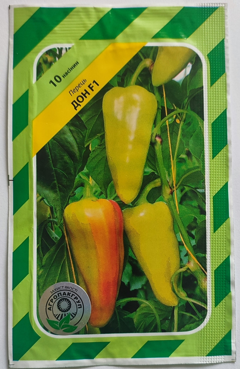 Перець солодкий Дон F1 ― ранньостиглий, продуктивний гібрид перцю з червоними плодами угорського типу. Представлений селекціонерами відомого бренду Bejo Zaden (Нідерланди). Однаково активно вирощується як в теплицях, так і у відкритому ґрунті. Період дозрівання від висадки розсади ― 60-65 днів. Рослина середньої висоти, гілляста та облистнена. Формує зав’язь навіть при зміні умов вирощування. Характеризується стійким імунітетом до фузаріозу та інших поширених захворювань.